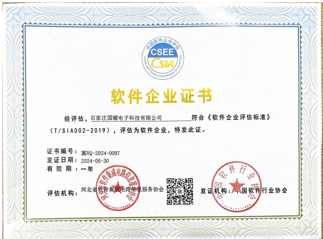 石家莊國(guó)耀電子科技有限公司成立于1998年,注冊(cè)資本1000萬(wàn)元,位于石家莊市高新技術(shù)產(chǎn)業(yè)開發(fā)區(qū),是國(guó)家高新技術(shù)企業(yè)和軟件企業(yè)。